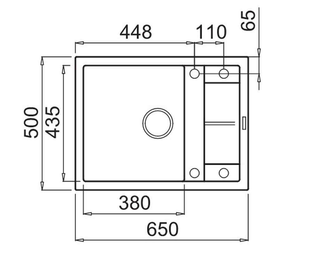 Integrovaná oblast pro příslušenství v odkapávači, vybavená předvrtanými otvory, které vám umožňují instalovat doplňky: excentrické ovládání odpadu, dřezovou baterii s vytahovací sprchou a dávkovač saponátu.
