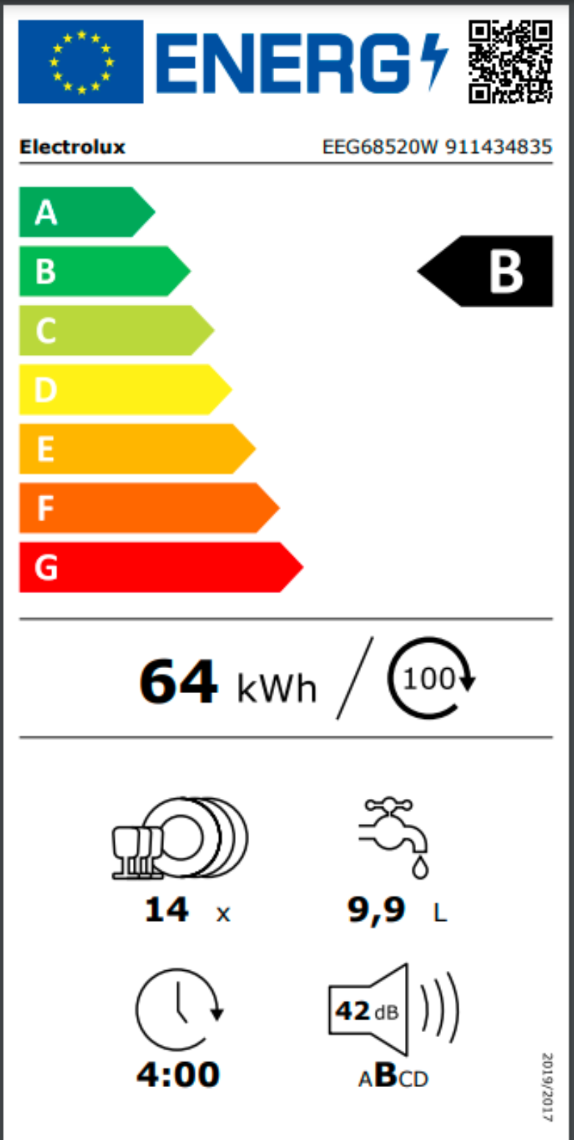 Kapacita mytí: 14: Podle normy IEC pro sadu nádobí. Jednou sadou nádobí je podle této normy: talíř, hluboký talíř, dezertní talíř, sklenice, čajový šálek s podšálkem, nůž, vidlička, polévková lžíce, dezertní lžíce a lžička.