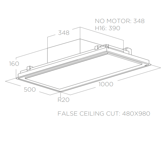 ELICA ILLUSION H16 @ je stropní odsavač par (digestoř) navržený designérem společnosti ELICA FABRIZIO CRISA . ELICA ILLUSION je vyroben z černého matného lakovaného rámečku + černého matného lakovaný středový panel. Odsavač par (digestoř) nabízí velký výkon od 275-540 m3/h a v intenzivním výkonu až 660/720 m3/h, s nízkou hlučností 51-74 db (A). Dálkové ovládání je součástí balení. Samozřejmostí je signalizace nutnosti čištění tukových a uhlíkových filtrů.