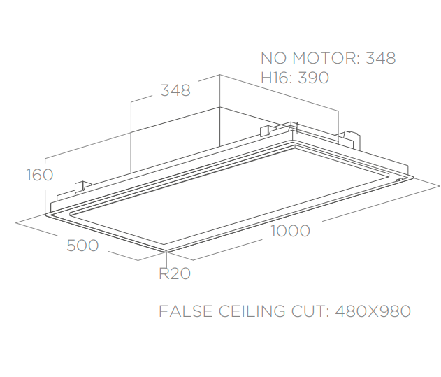 ELICA ILLUSION NO MOTOR @  je stropní odsavač par (digestoř) navržený designérem společnosti ELICA  FABRIZIO CRISA. ELICA ILLUSION je vyroben z rámečku z nerezové oceli + středový panel připraven na osazení sádrokartonem. Dálkové ovládání je součástí balení. Samozřejmostí je signalizace nutnosti čištění tukových a uhlíkových filtrů.