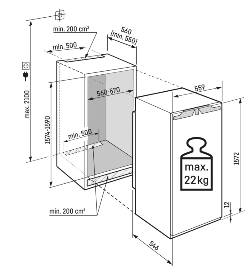 Rozměry výklenku výška/šířka/hloubka 157,4 - 159 / 56 - 57 / 55,0 cm