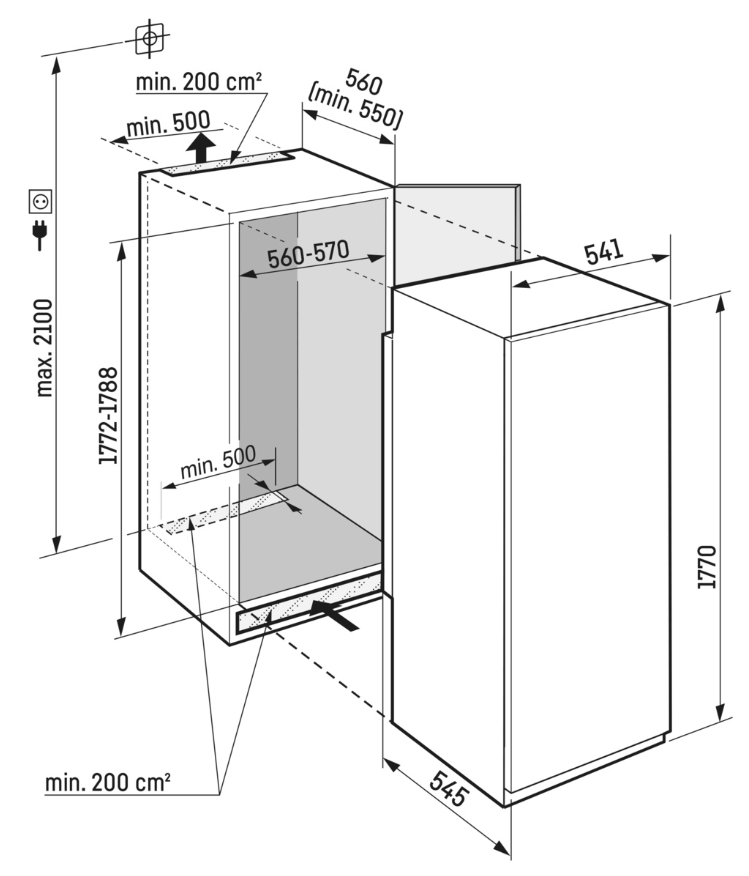 Rozměry výklenku výška/šířka/hloubka 177,2 - 178,8 / 56 - 57 / 55,0 cm