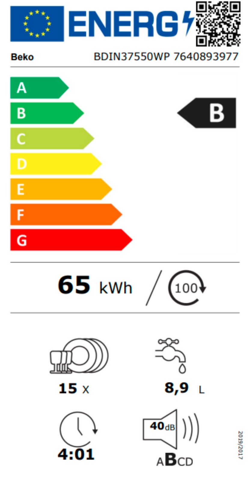 Spotřeba energie (kWh/cyklus)   0.654 kWh
