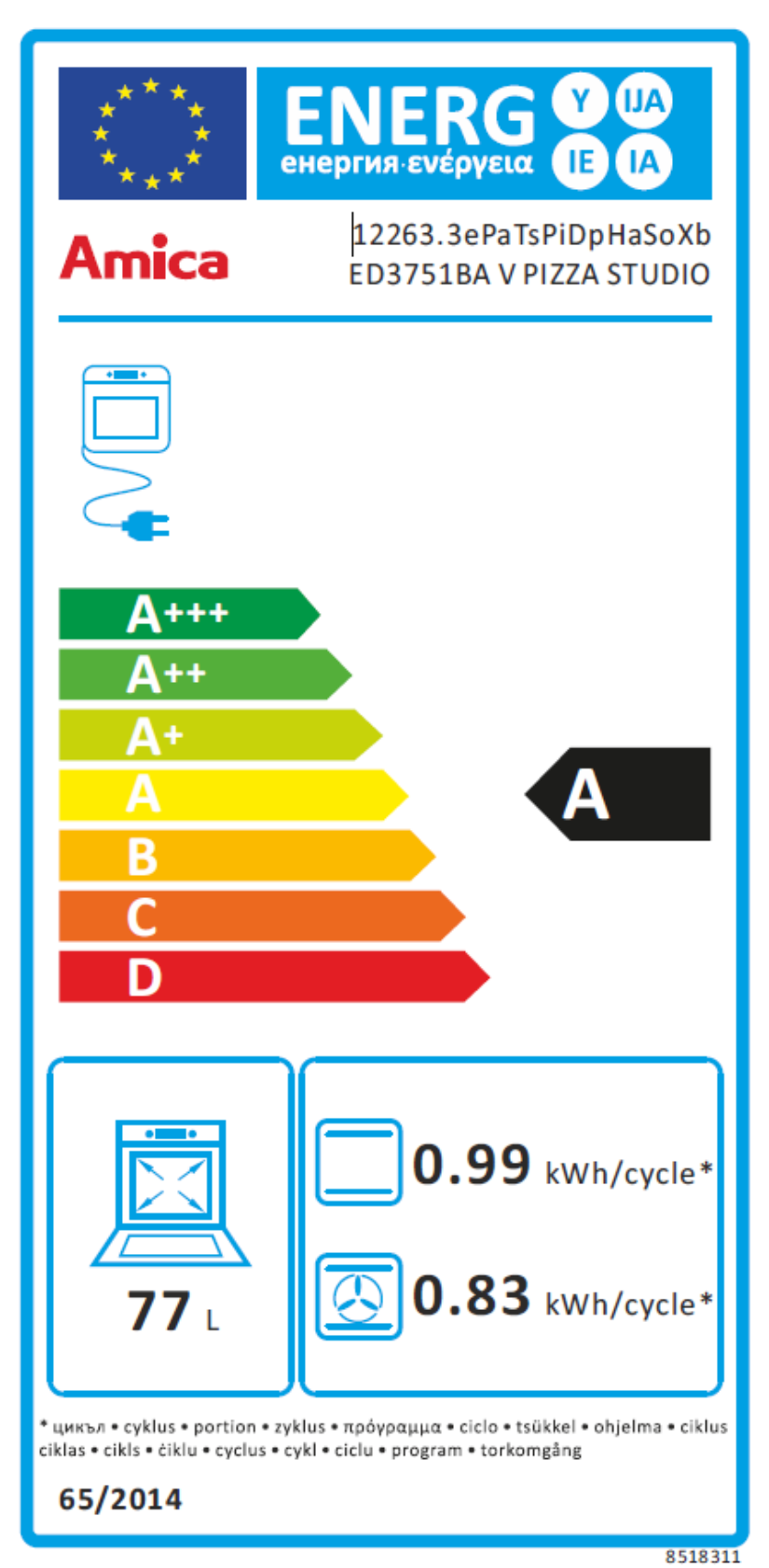 | Objem trouby L | 77 |