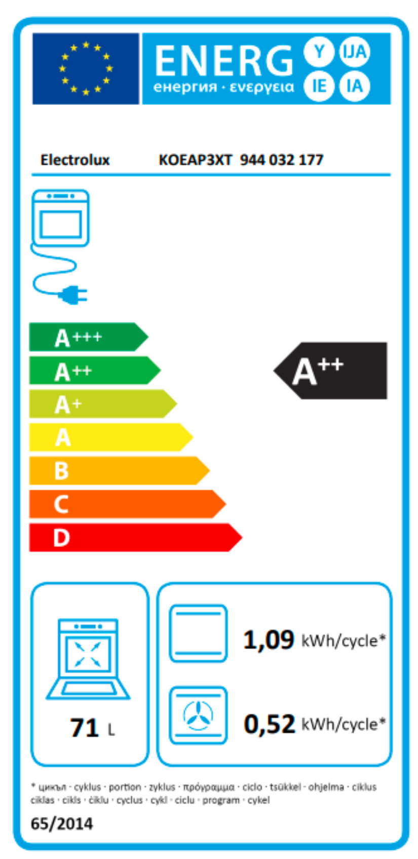 Spotřeba energie se standardním zatížením (kWh/cyklus): 1.09