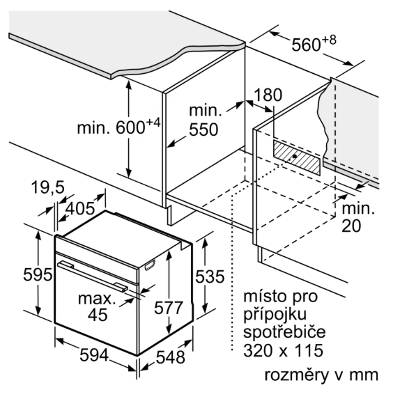 | Hloubka pro vestavbu cm | 55 |